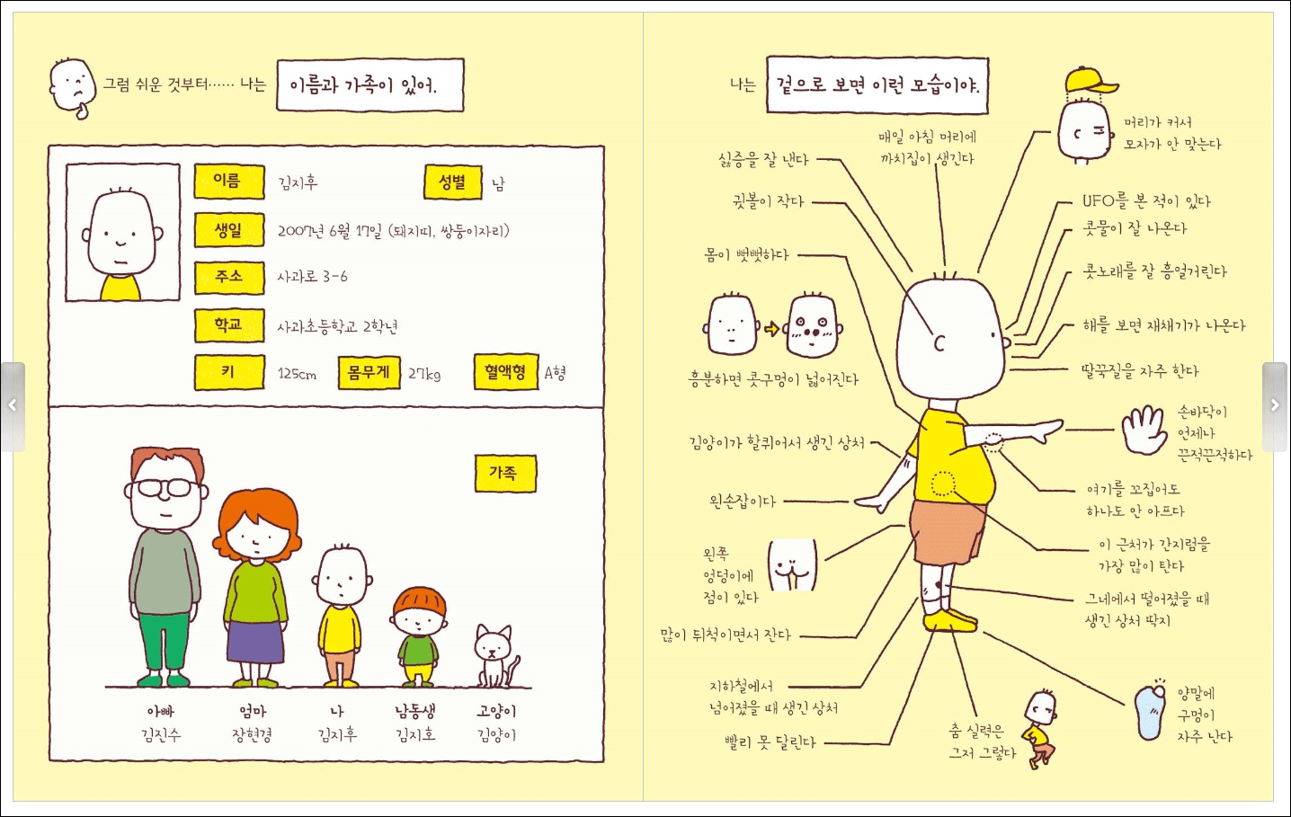 이 책은 어린이들에게 자신을 이해하고 표현하는 법을 자연스럽게 탐구하게 하며, 자기소개와 자아 성찰의 과정을 유머러스하고 재미있게 그려내어 어린 독자들이 자기 자신을 깊이 생각해볼 기회를 제공합니다. 또한 이 책은 교육 현장에서 자기소개 프로젝트나 자기 탐구 활동으로 자주 활용되며, 교실에서 학생들이 자신만의 ‘나 보고서’를 만들어보는 활동에 매우 적합한 자료로 사용되고 있습니다.